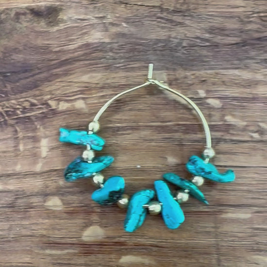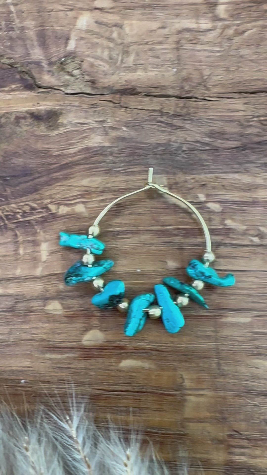 Filigrane Creolen 18K vergoldetes Messing mit Türkis Splittersteinen und Messingperlen für Bohostil Liebhaber. Die Ohrringe passen perfekt zu vielen Outfits und sind vielseitig kombinierbar.