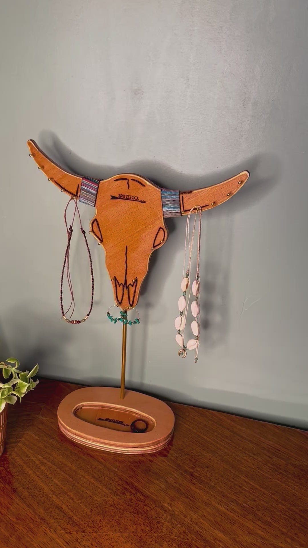 Schmuckständer für Ketten Ohrringe Aufbewahrung Holz Büffelkopf